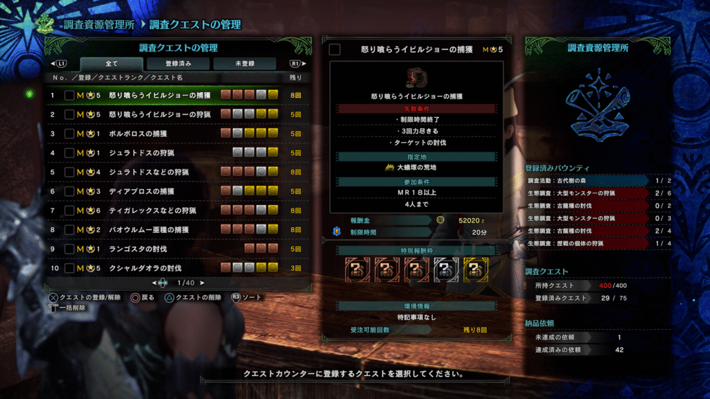 調査クエストに出ないな