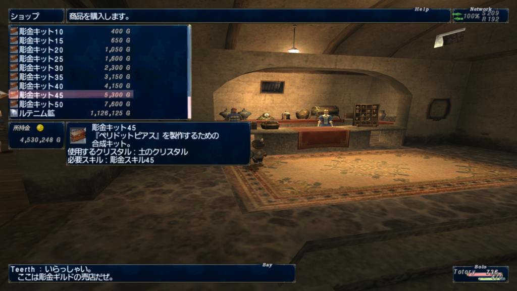 前回は、合成スキル上げの準備をしたんだったな