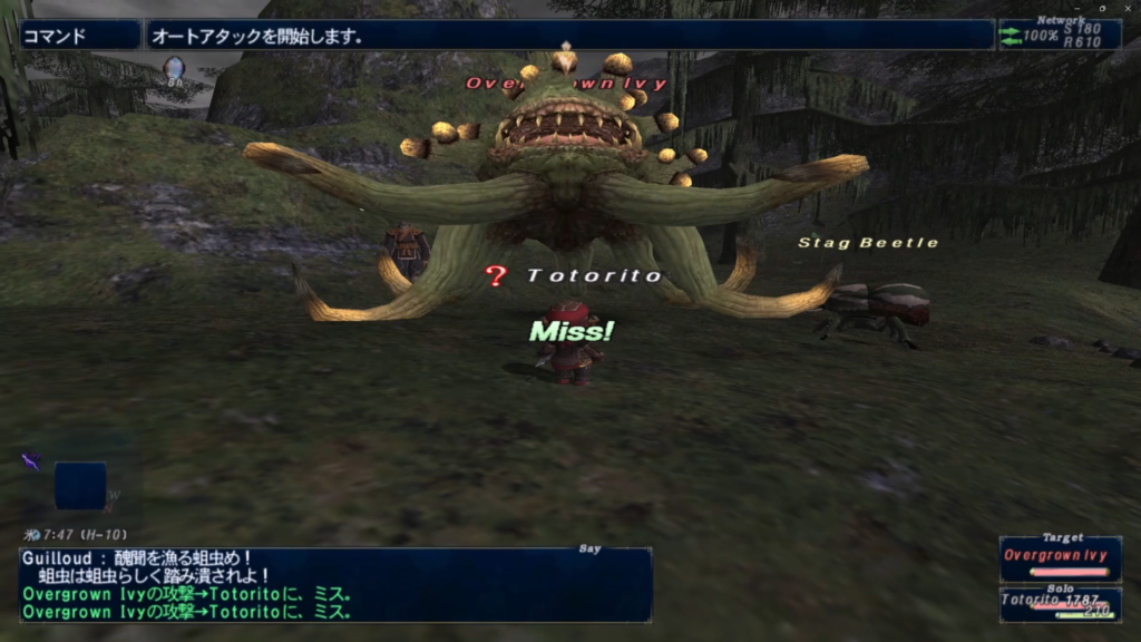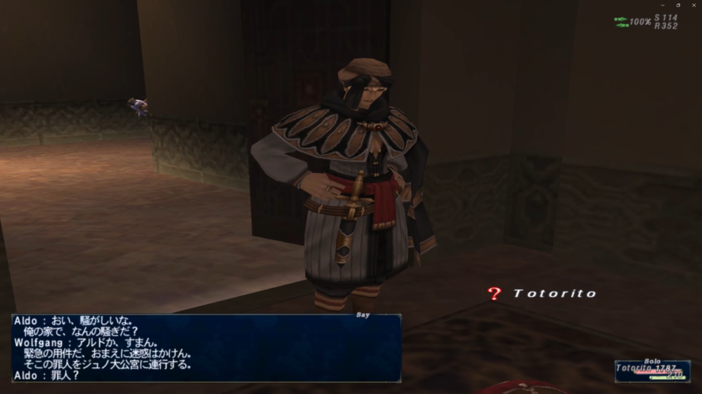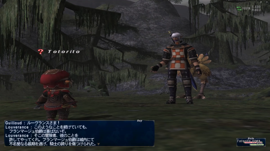 ジャグナー森林(E-6)からギルド桟橋へ入り、(H-10)にいるGuilloudと会話で・・・